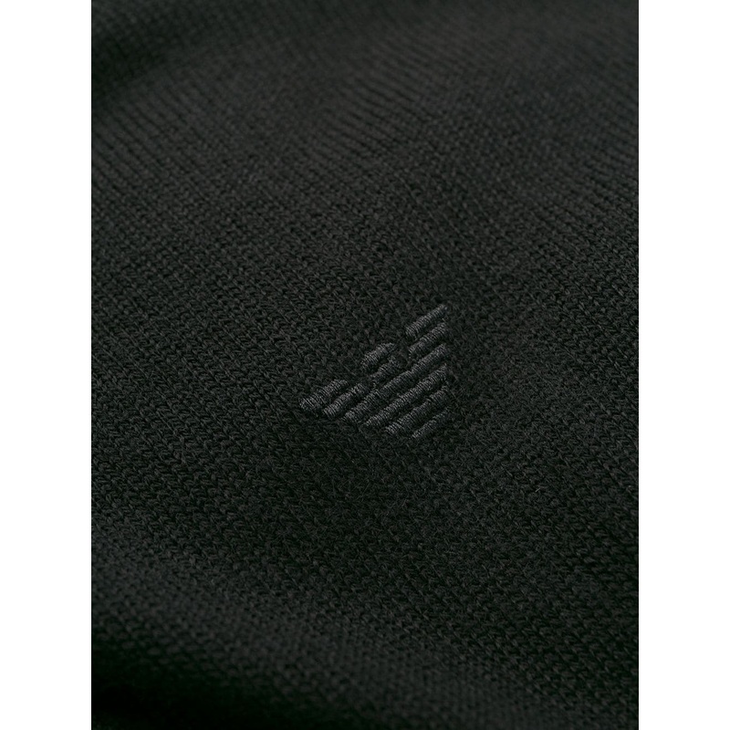 Logo inlaid sweater with round collar, long sleeves, logo inlay on the front chest, logo embroidery and rib trim on the back.