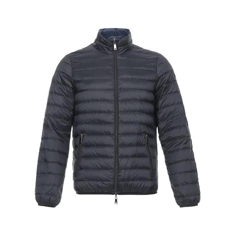 Logo double-sided down jacket, zipper opening and closing, filling.
