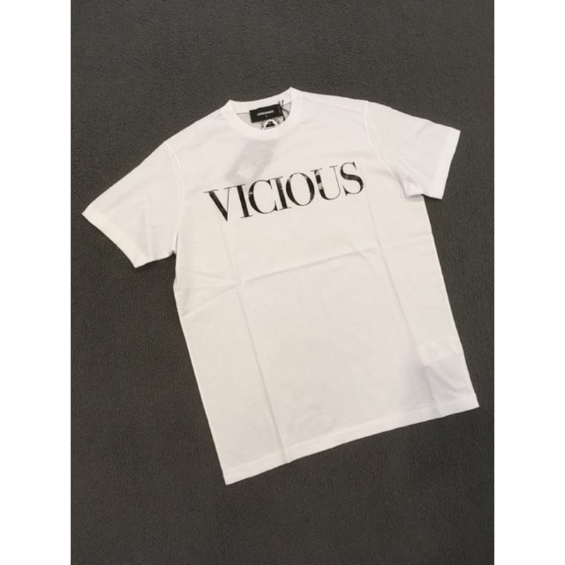White black logo printed T-shirt, black logo printed, round collar, short sleeves, vertical hem.