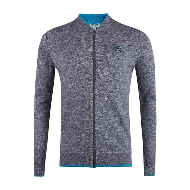 Grey tiger head embroidered cardigan, zipper opening and closing, rib hem.